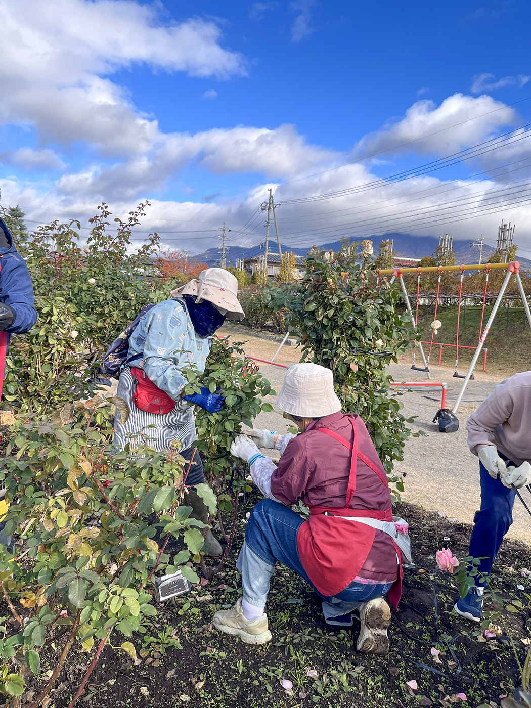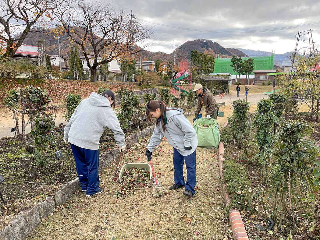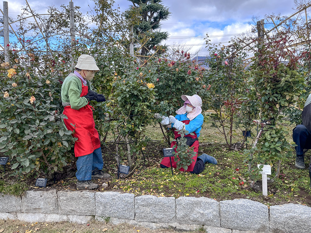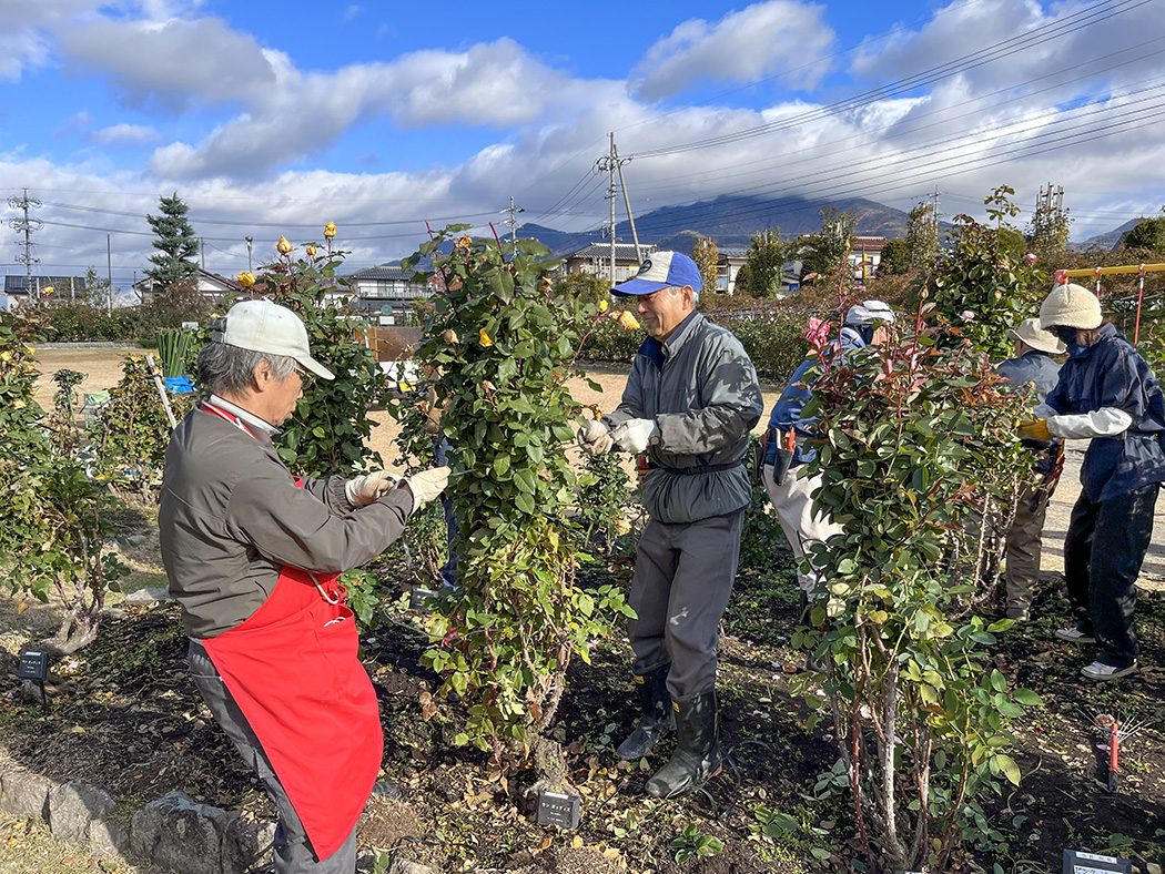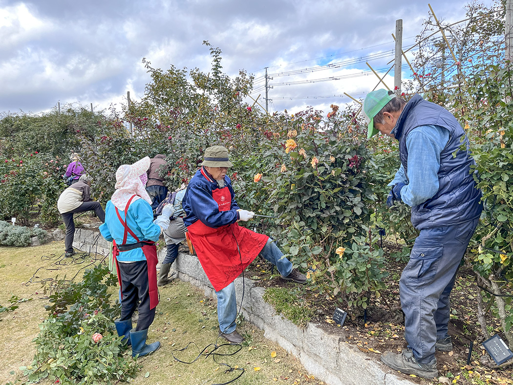 冬囲い会員作業を11月22日に行いました。一本木公園バラの会会員、職員、そして中野西高校の生徒さんのボランティア参加で総勢38人で取り組みました。
