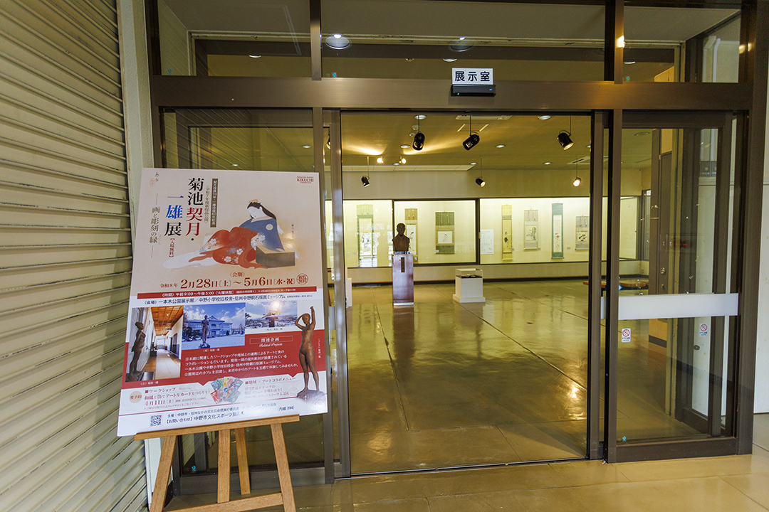 中野市出身の日本画家・菊池契月と長男の彫刻家・菊池一雄の没後70年・40年を記念した展覧会。